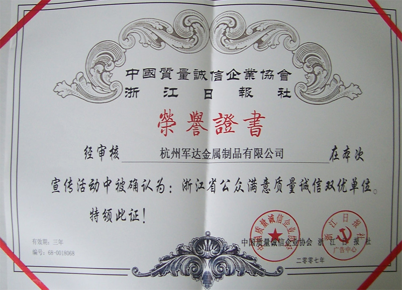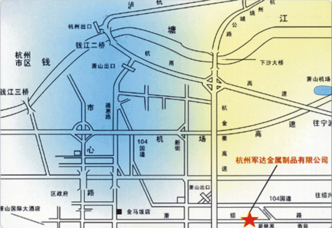 杭州軍達金屬制品有限公司成立于2002年是一家專業(yè)生產(chǎn)各種汽配件,彈簧,銷子,齒型墊圈等金屬加工型企業(yè)。公司地處杭州市蕭山區(qū)104國道旁,距離杭州蕭山好機場僅2公里路程地理位置優(yōu)越,交通便捷。主要產(chǎn)品標準有:DIN、ANSI、NFE、BS、JIS、GB等。產(chǎn)品遠銷德國,美國,法國,英國,韓國、日本等許多發(fā)達國家。 公司十分重視產(chǎn)品質量,引進先進的生產(chǎn)設備,員工技術精湛,經(jīng)驗豐富,能及時有效地跟進顧客新要求,并以合理的價格、高品質的質量、準時交貨的信譽,為顧客提供優(yōu)質的產(chǎn)品和滿意的服務。